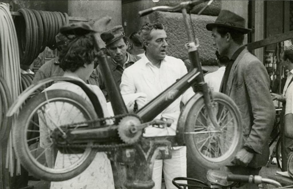 Vittorio De Sica began as a theatre actor in the early 1920s and became an immensely popular film actor in the ’30s, before taking to directing in 1940. He a leading figure in the neorealist movement – a golden age in Italian filmmaking. This movement brought a revolution in the world of cinema, quite because of its sharp contrast to the American films at the time. These films were shot on location, usually with non-professional actors and the stories were set amongst the poor and the working class in post-WWII Italy. De Sica (along with Rossellini, Visconti) was at the helm of this movement with films such as I Bambini Ci Guardano (1944) and Shoeshine (1946) before making the masterpiece Bicycle Theives (1948).